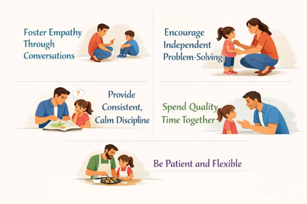 Patience allows parents to maintain their calm in challenging situations. Flexibility helps parents adjust to their child’s evolving needs, ensuring that their approach remains effective. Self-care ensures that you can be your best self for your child, leading to a healthier, more positive parenting experience.