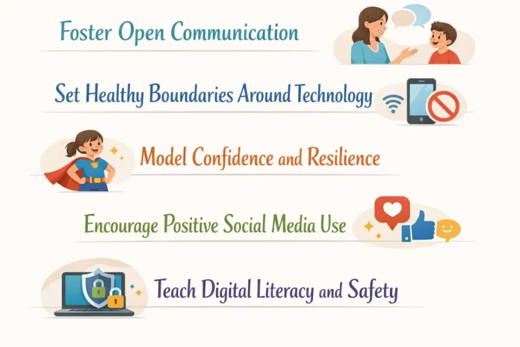 - Model Positive Behavior: Set an example by practicing healthy online habits yourself, such as limiting screen time, promoting digital detoxes, and using social media responsibly.