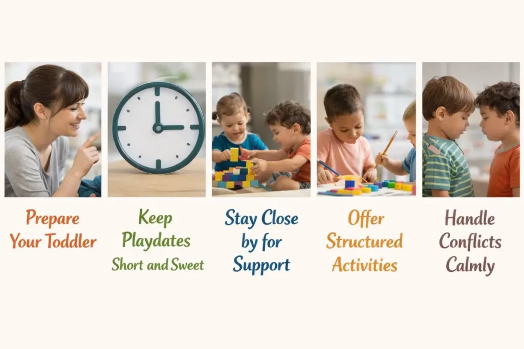 During the playdate, be nearby to monitor your toddler’s interactions. Intervene when necessary, but also give your child a chance to solve minor conflicts independently.