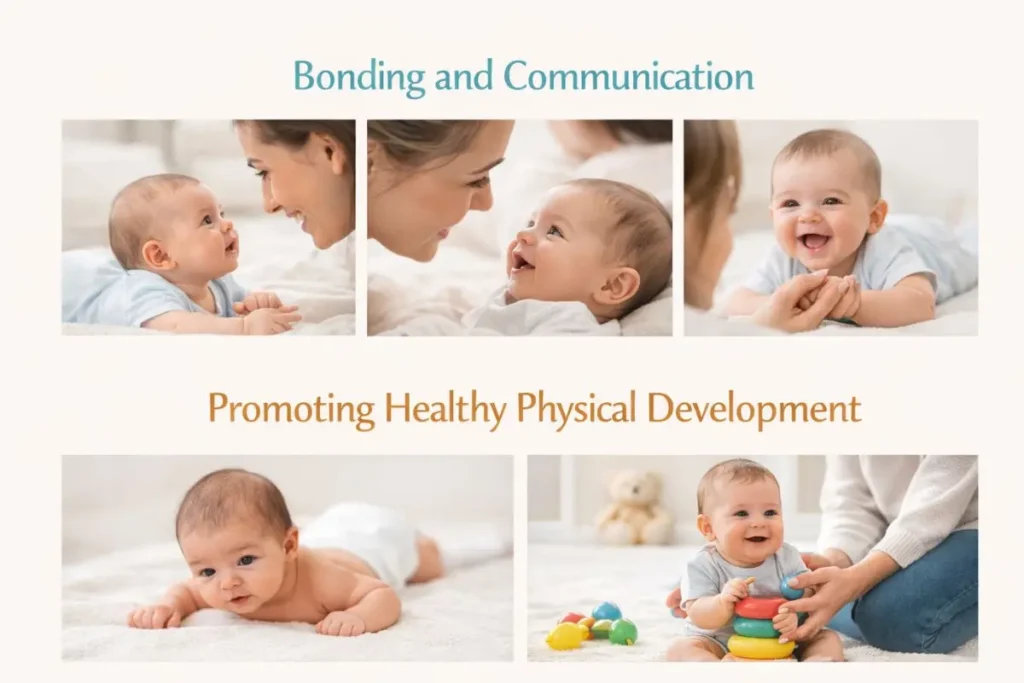 - Tummy Time: A few minutes of tummy time daily helps build muscles needed for future milestones like rolling over and crawling.